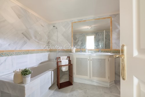 These elegant properties consist of 2 and 3 bedrooms with large terraces; fully furnished and equipped kitchens, living / dining room with fireplace. Most of the properties have sea views and views of the gardens and pool area. The exterior architecture is classic style but with modern interiors. The two-bedroom apartments have two bathrooms and the three-bedroom properties have 3 en-suite bathrooms.