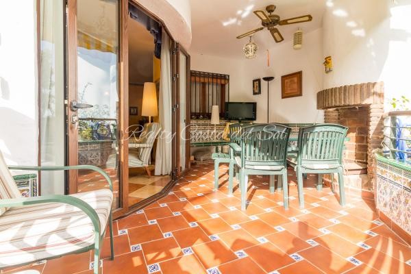 La vivienda en esta dentro de un recinto cerrado con piscina y frondosos jardines y a unos 100 metros del mar y con acceso directo desde la Urbanización.