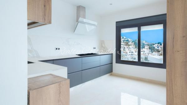 La villa dispone de 4 dormitorios con baños en suite además de 2 baños independientes. Cocina open-plan, salón con vistas al mar y la montaña.